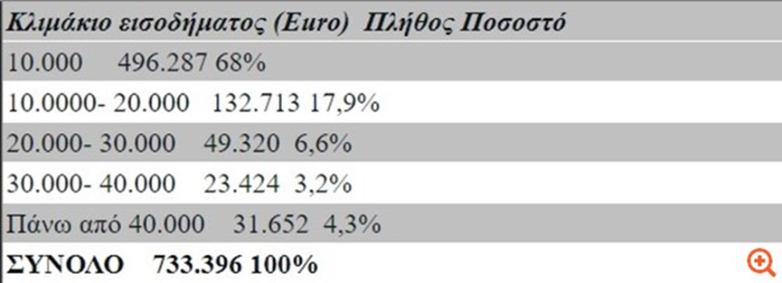 Ειδικότερα, σύμφωνα με την επεξεργασία των τελευταίων φορολογικών δηλώσεων των 733.396 αυτοαπασχολούμενων, προκύπτει ότι σχεδόν μισό εκατομμύριο ελεύθεροι επαγγελματίες δήλωσαν για το 2022 εισόδημα έως 10.000 ευρώ τον χρόνο, ενώ μόνο 31.652 ή 4,3% του συνόλου δηλώνουν πάνω από 40.000 ευρώ.