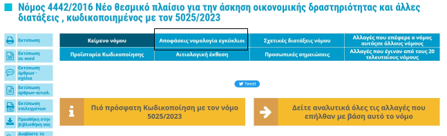 Για το νόμο 4442/2016 έχει εκδοθεί πλήθος κανονιστικών αποφάσεων και εγκυκλίων τις οποίες μπορείτε να δείτε κατ’ άρθρο πατώντας στην επιλογή «Αποφάσεις νομολογία εγκύκλιοι»: